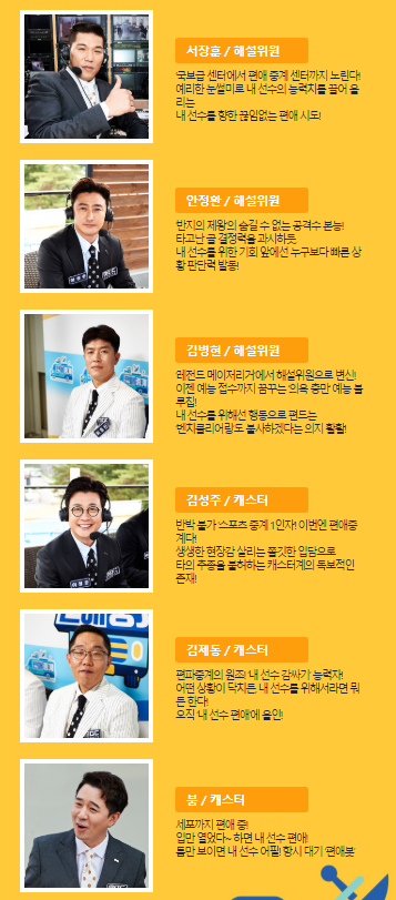 출연진 - 김성주, 안정환, 붐, 김병현, 서장훈, 김제동