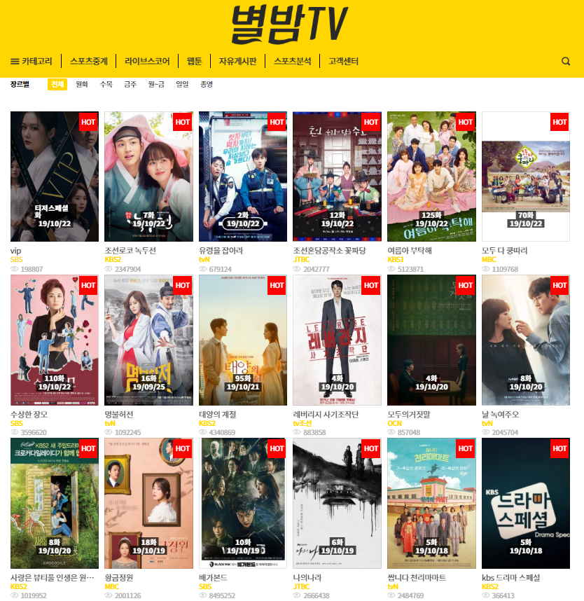 별밤tv 입니다. 현재 방송 중인 드라마들이 업데이트 되어 있습니다. 간혹 막히는 경우도 있는데 시간이 지나면 다시 복구가 됩니다.