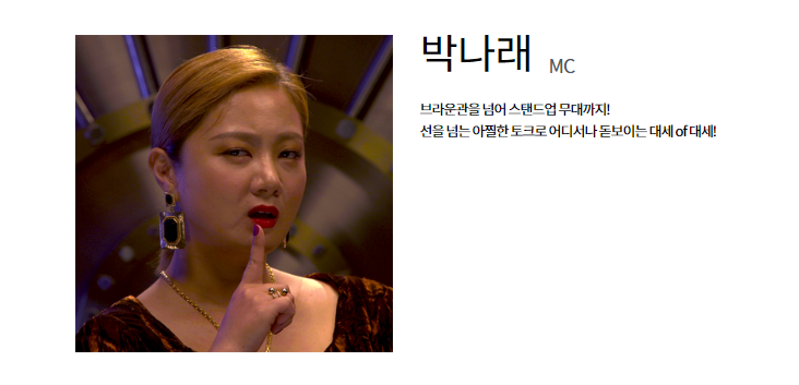 프로그램 소개 - 우리 사회를 살아가는 다양한 사람들이 겪은 경험담, 고백 등을 과감하고 위트 있게 쏟아내는 본격 스탠드업 코미디 쇼