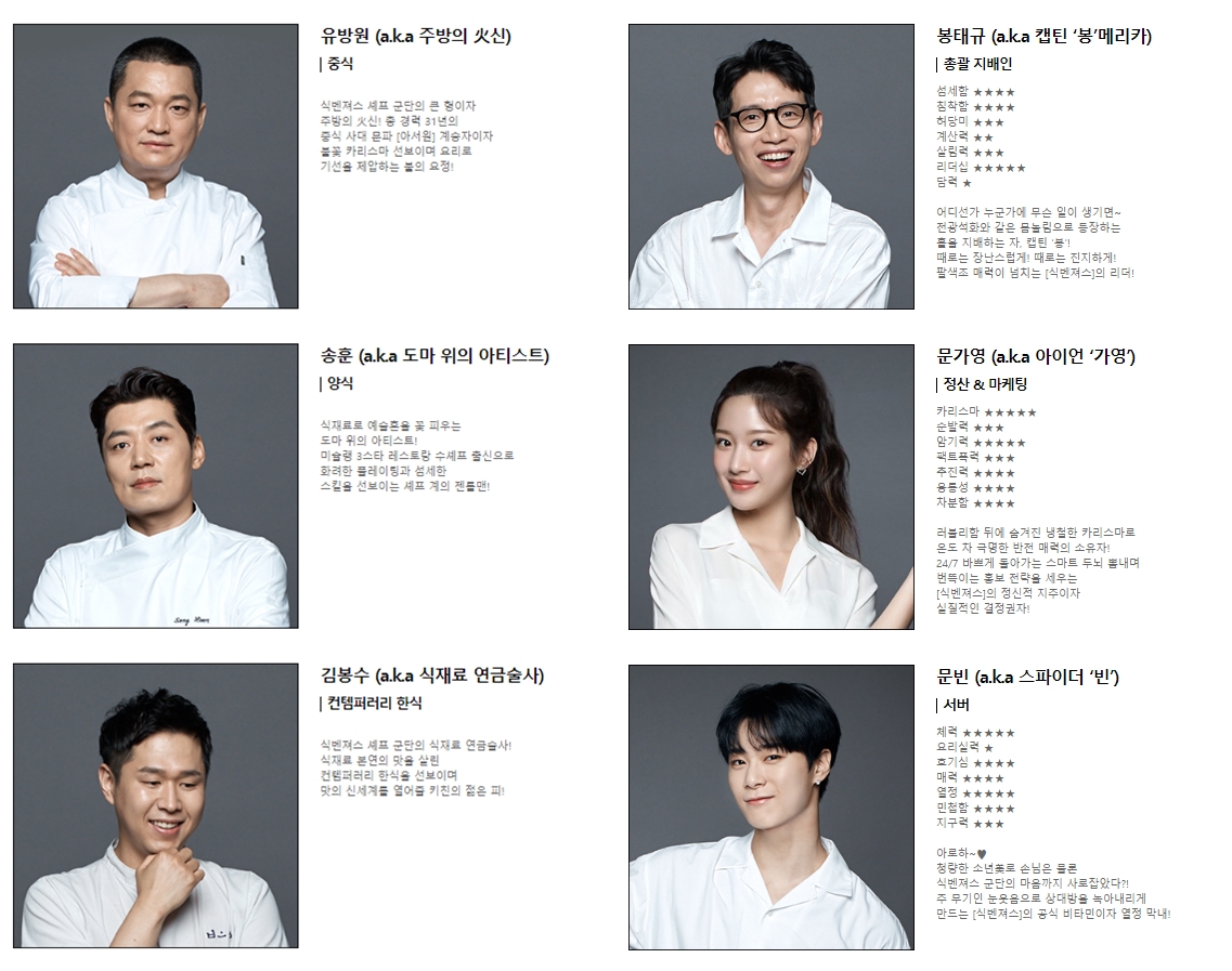 연예인 출연자 봉태규·문가영·문빈과 송훈·유방원·김봉수 셰프로 구성된 최고의 드림팀 군단이 다양한 식재료 속에서 좌충우돌 새로운 요리를 만들어 판매하는 과정이 공감과 웃음을 선사할 예정입니다.