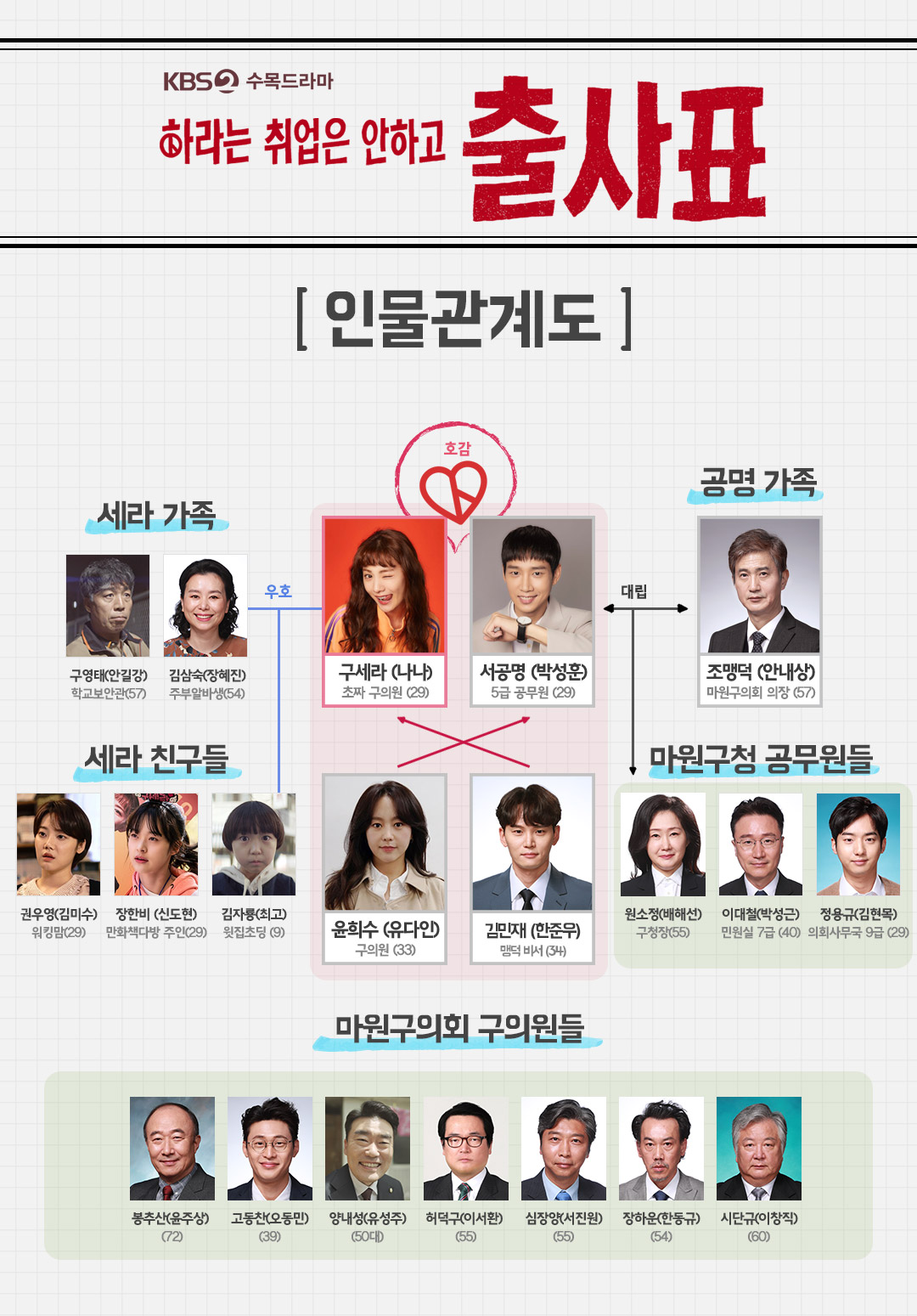 나나는 극 중 저스펙에 흙수저로 가진 것 하나 없지만 할 말은 해야만 하는 구세라로 역활을 맡았고, 박성훈은 원칙주의자 5급 사무관 서공명 역을 맡았습니다.