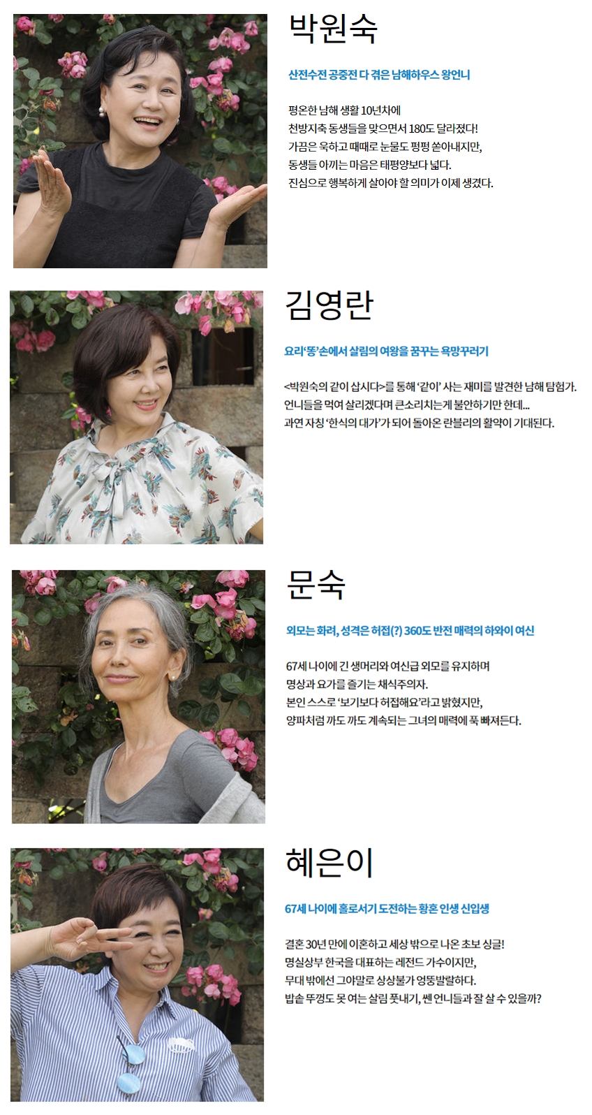 출연진 - 박원숙, 혜은이, 김영란, 문숙