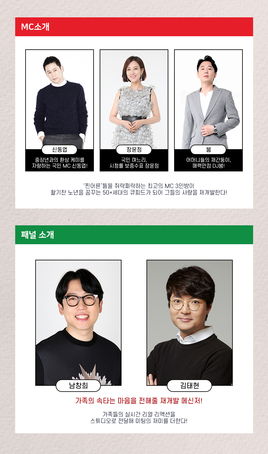 출연진 - 신동엽, 장윤정, 붐, 남창희, 김태현