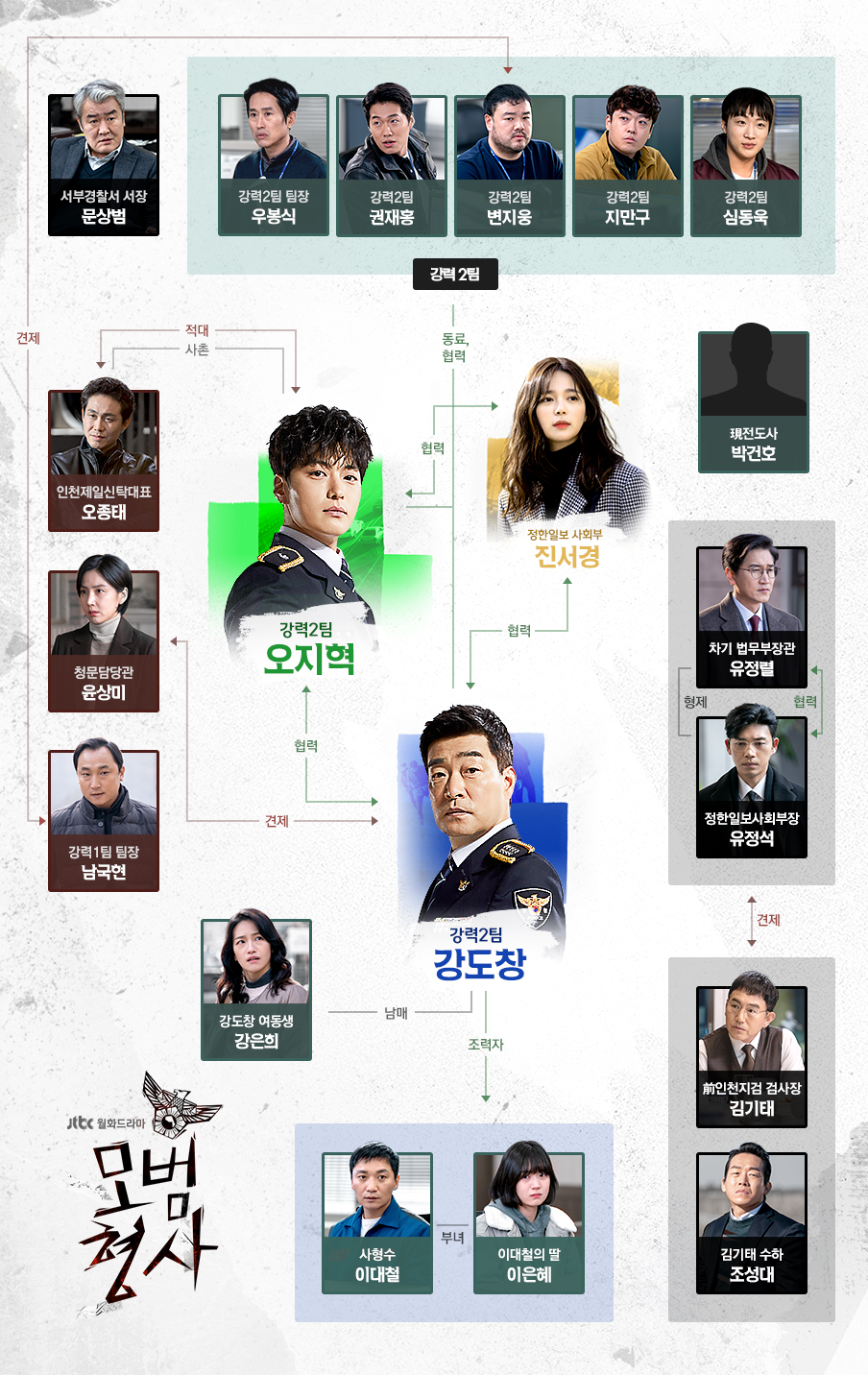 JTBC에서 방송하는 월화드라마 모범형사는 달라도 너무 다른 두 형사가 은폐된 하나의 진실을 추적하는 통쾌한 수사극이다.