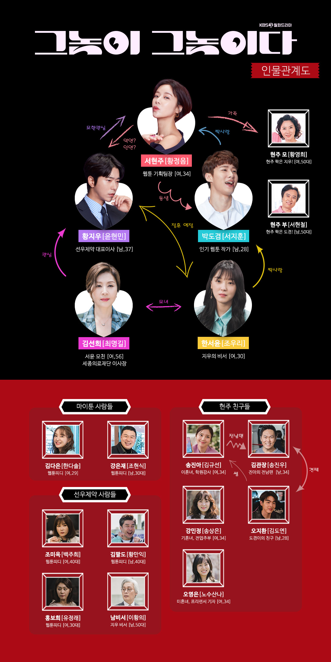 출연진 - 황정음, 윤현민, 서지훈, 최명길