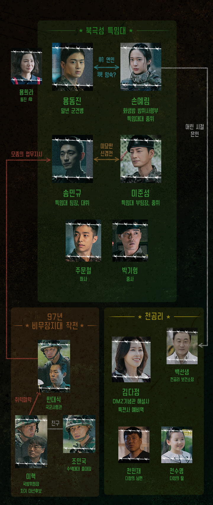OCN에서 방송하는 토일드라마 최전방 비무장지대(DMZ)에서 시작된 미스터리한 실종과 살인사건의 비밀을 밝히기 위해 구성된 최정예 수색대 이야기를 담은 국내 최초 밀리터리 스릴러 드라마입니다.