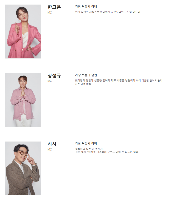 출연진 - 한고은, 하하, 장성규, 오은영
