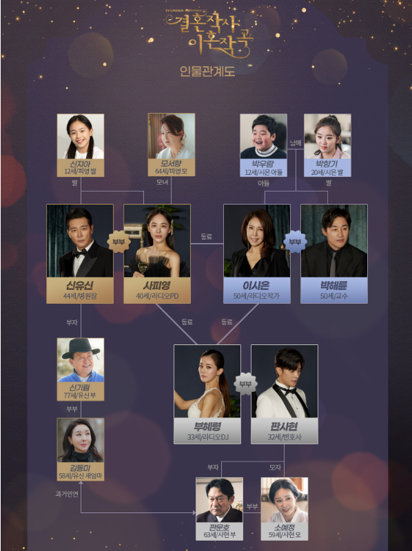 박주미가 연기할 사피영은 신유신의 아내로 누구보다 완벽한 가정을 꿈꾸는 인물입니다. 이가령이 맡은 부해령은 아나운서 출신 라디오DJ로 판사현의 아내로 남편 사현과 2세 계획 없이 '워라벨 라이프'를 살자고 약속하고 결혼했습니다.