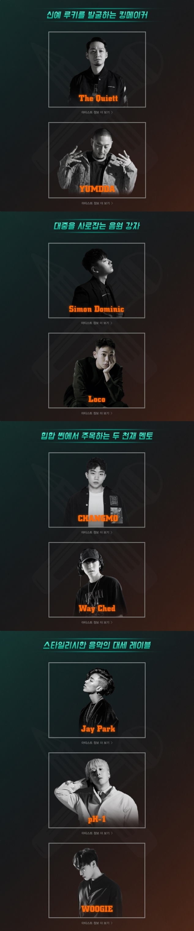 프로듀서 - 더 콰이엇&염따, 사이먼 도미닉&로꼬, 박재범&pH-1&우기, 창모&웨이체드