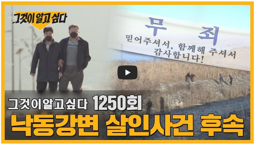 지난 2월 4일 끝나지 않을 것 같았던 긴 싸움에 드디어 마침표가 찍혔습니다. 1990년에 발생한 낙동강변 살ㅇ사건의 피의자로 무기징역을 선고받았던 장동익 씨와 최인철 씨가 재심을 통해 살ㅇ 누명을 벗은 것이었느데요. 21년간 억울한 옥살이를 한 두 사람. 30년 전 그들은 왜 ‘살ㅇ자’가 된 것일까? 그것이 알고 싶다 본방을 시청 못하신 분들은 SBS 온에어를 통해 실기간TV다시보기 통해서 시청하실 수 있습니다.