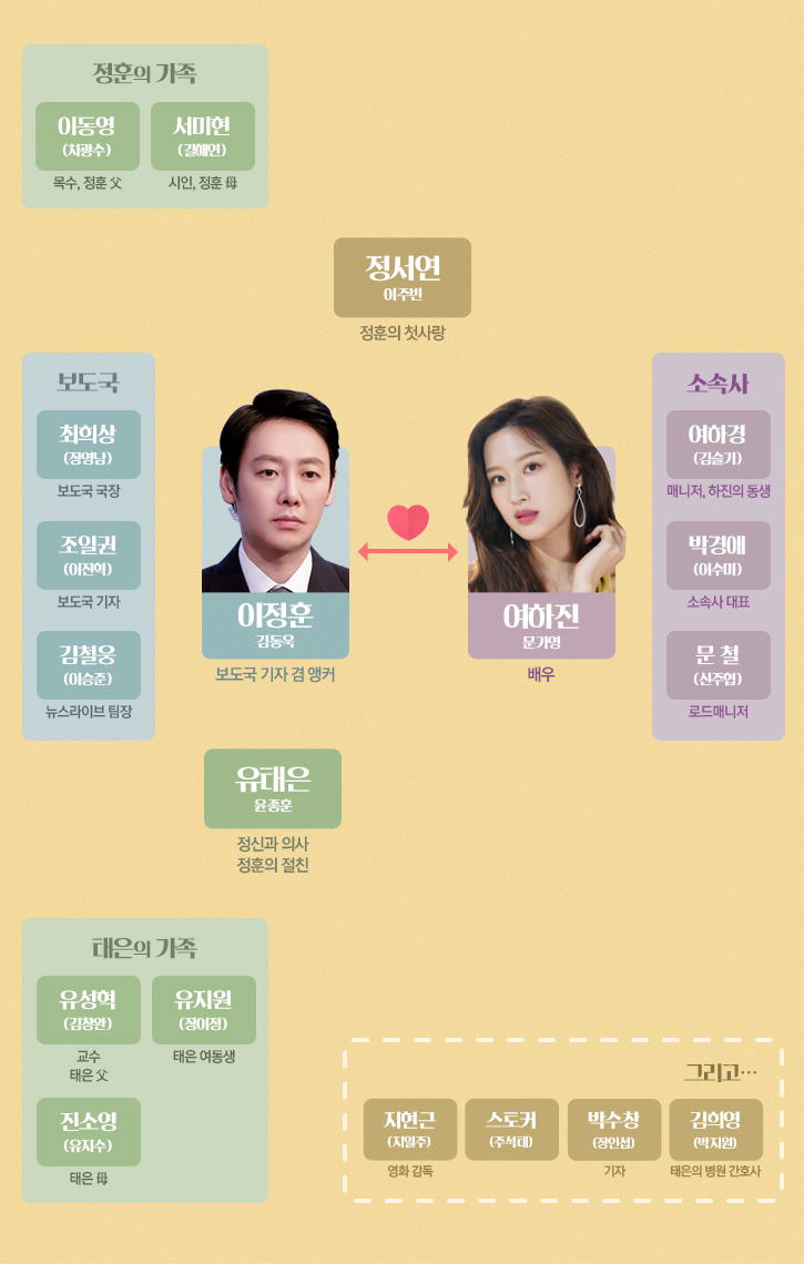 보도국 기자이자 앵커인 김동욱이 이슈메이커 배우 문가영과 어떻게 만남을 시작하게 되는 것인지 관심을 모은다. 나아가 언론계와 연예계를 대표하는 이들의 아슬아슬한 로맨스가 어떻게 펼쳐질지 본 방송에 대한 기대를 높이고 있습니다.