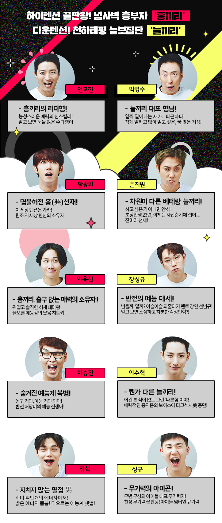 흥끼리 성향 멤버 인교진, 하승진, 정혁, 이용진, 황광희