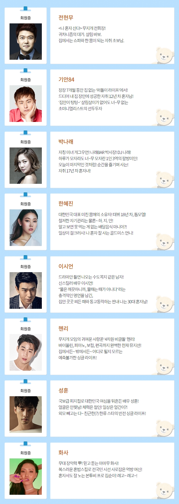 출연진 - 박나래, 이시언, 기안84, 성훈, 헨리, 화사