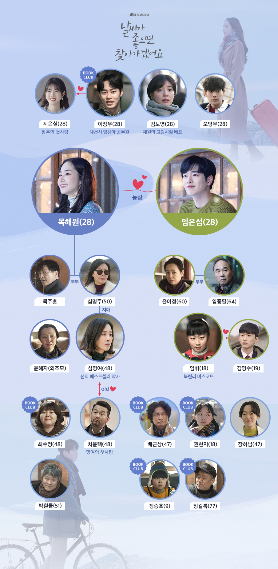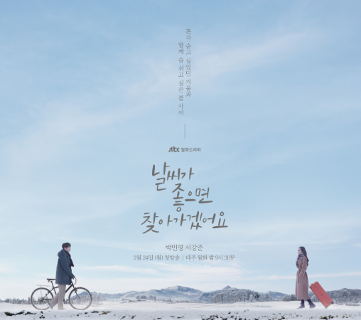 JTBC에서 방송하는 월화드라마 날씨가 좋으면 찾아가겠어요는 혜원과 은섭의 가슴 따뜻한 힐링 로맨스 드라마입니다.