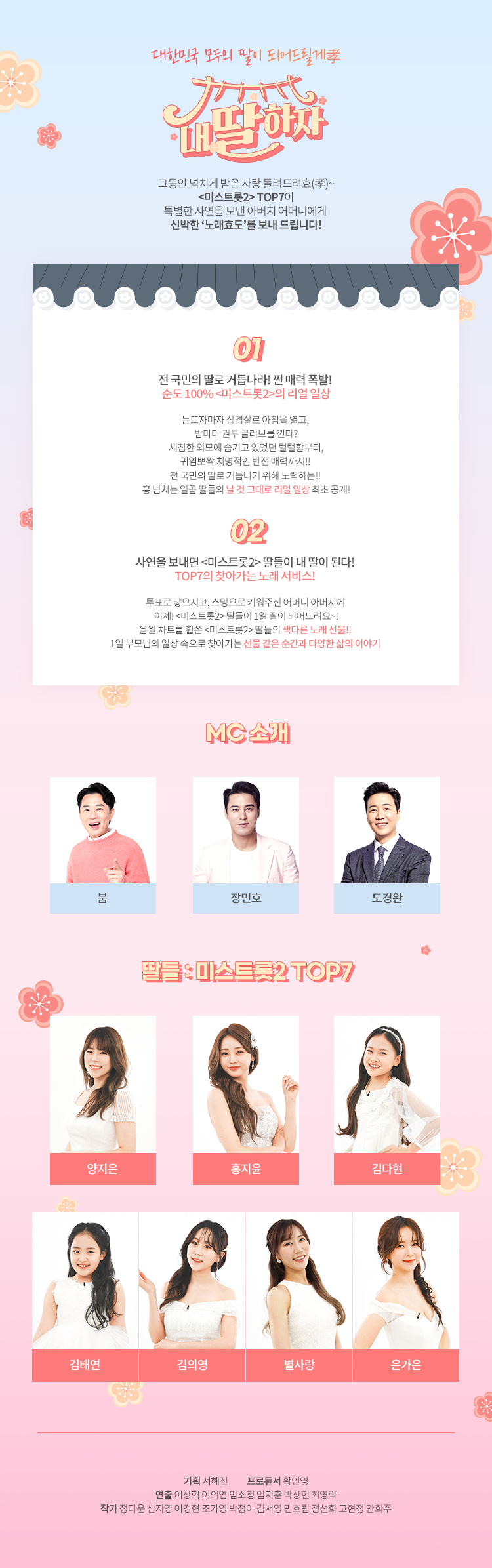 TV조선 ‘내딸하자'는 그동안 넘치게 받은 사랑 돌려드려효(孝) ~ <미스트롯2> TOP7이 특별한 사연을 보낸 아버지 어머니에게 신박한 ‘노래효도’를 보내 드립니다!