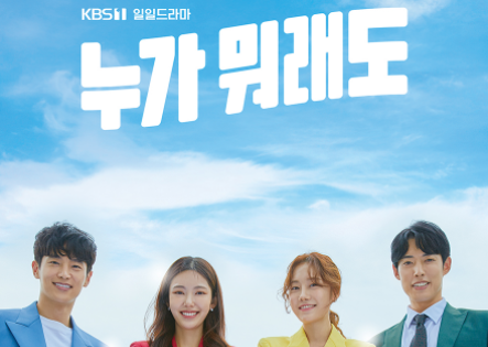 KBS1에서 방송하는 저녁 일일드라마 누가 뭐래도는 부모의 이혼과 재혼을 겪은 자녀들이 세상의 편견과 맞서 싸우며 일과 사랑 앞에 닥친 난관을 이겨내면서 성장해가는 이야기를 그리는 드라마입니다.