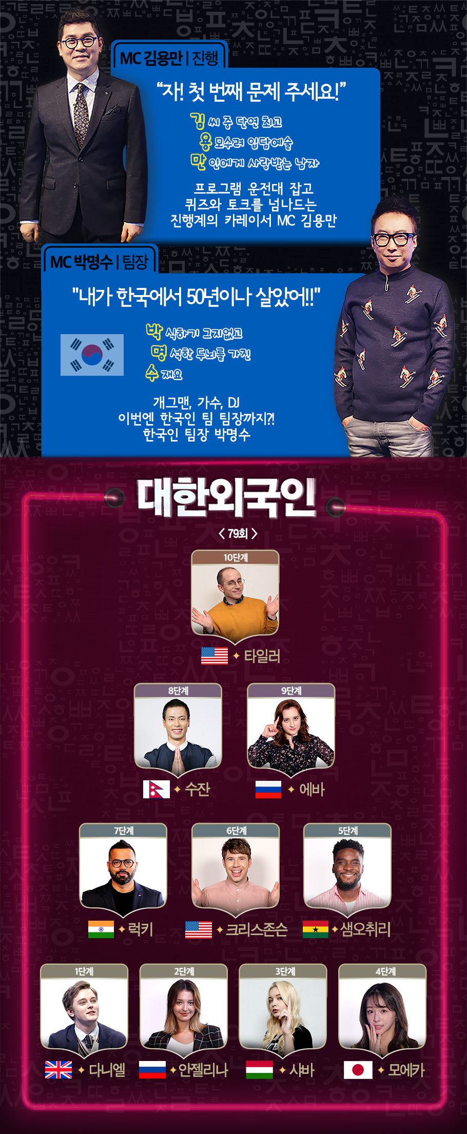 프로그램 소개 - 한국 거주 3년 차부터 30년 차까지! 한국인보다 더 한국인 같은 '대한외국인' 10인과 한국 스타 5인이 펼치는 예측불허 퀴즈대결!