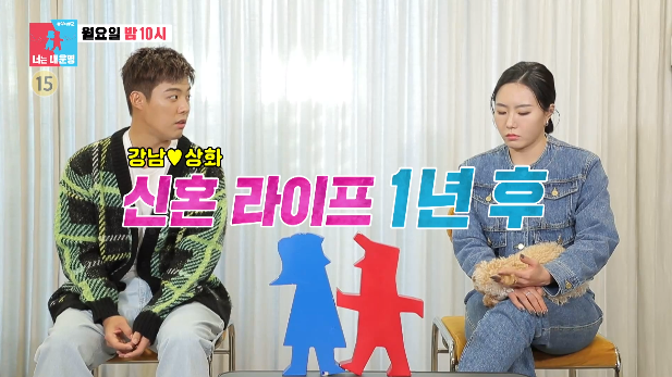 강남은 “진짜 솔직히 이야기해요? 서로 너무 다른 거예요”라며 결혼생활에 불만을 드러냈고 제작진은 ‘삐거덕 대는 행복의 시소’ 자막을 달았습니다.