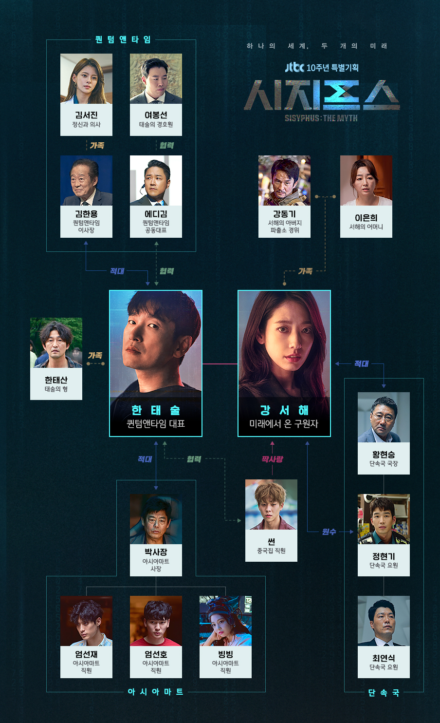 JTBC 수목드라마 ‘시지프스'는 우리의 세상에 정체를 숨기고 살아가고 있는 존재를 밝혀내려는 천재공학자와 그를 위해 멀고도 위험한 길을 거슬러온 구원자의 여정을 그린 판타지 미스터리 드라마입니다.