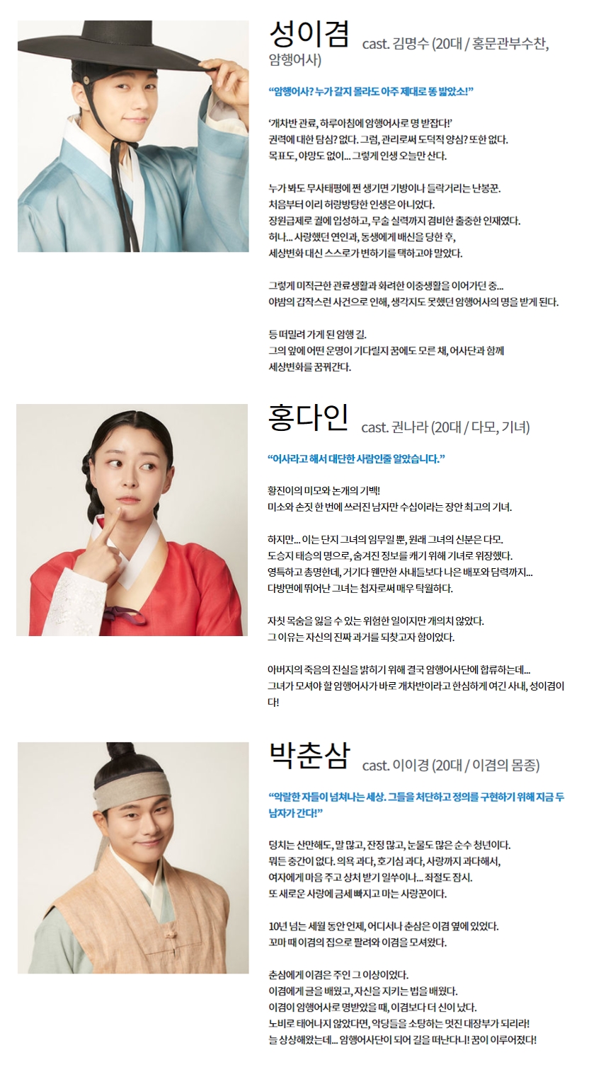 암행어사 : 조선비밀수사단 재방송 15회 16회 마지막회 결말 시청률 종영 후속 출연진 인물관계도 몇부작 촬영지 KBS 온에어 실시간