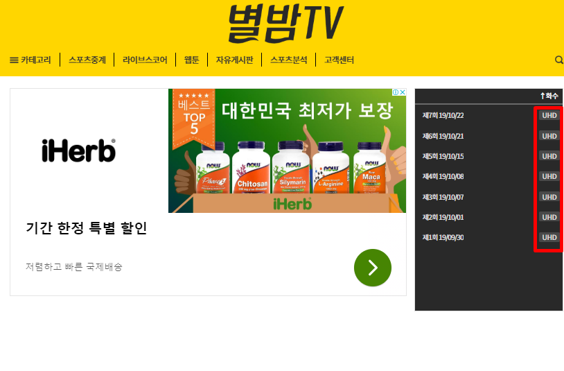 별밤tv 시청 방법은 아주 간단합니다. 오른쪽 UHD를 누른 후 광고 후에 방송 송출이 됩니다. 조금만 기다리시면 됩니다.