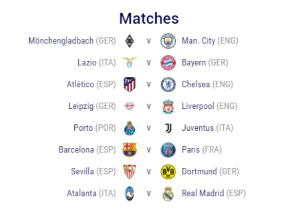 유럽 챔스답게 16강전부터 강팀간의 대결이 눈에 띄는데요. A.T마드리드와 첼시의 매치, 라이프치히와 리버풀의 매치, 바르셀로나 메시와 파리 네이마르의 매치가 그렇습니다. 첼시는 라리가 1위를 하고 있는 AT마드리의 방패를 쉽게 뚫지 못할것으로 보고 있으며, 바르셀로나와 파리의 대결은 스타선수들의 대결로 흥미를 끌겠지만 사실상 바르셀로나의 공격진은 파리에 비해 많이 노쇠했습니다. 이번 유럽 챔스 8강에 올라갈 팀을 조심스럽게 예상한다면 맨시티, 바이에른 뮌헨, 아틀레티코 마드리드, 라이프치히, 유벤투스, 파리생제르망, 도르트문트, 레알마드리드입니다.