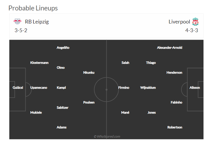 라이프치히는 ‘3-5-2’ 포메이션으로 나설 것으로 보이며 GK 굴라치 DF 클로스터먼, 우파메카노, 무키엘레, MF 자비처, 캄풀, 앙헬리뇨, 다니 올모, 아담스, FW 포울센 니쿤쿠 등의 선발 출장이 예상됩니. 포백을 선호하는 나겔스만 감독이지만 최근 몇 경기는 스리백을 사용하고 있어 이 포진을 예상됩니다. 경우에 따라백라인에서는 오르반, 중원에는 하이다라가 들어갈 가능성이 있습니다.