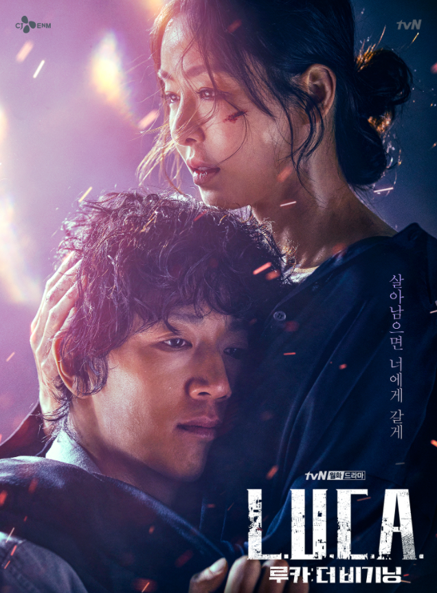 '루카 : 더 비기닝'(이하 '루카')은 특별한 능력 때문에 세상에 쫓기게 된 '지오'가 유일하게 그의 모습을 기억하는 강력반 형사 '구름'과 함께 거대한 음모에 맞서는 스펙터클 추격 액션극인데요. '루카'는 별도의 원작이 없는 tvN 오리지널 드라마다. '보이스1', ‘손 the guest’를 통해 장르물의 새 지평을 연 김홍선 감독과 '추노', '도망자 Plan.B', 영화 '해적: 바다로 간 산적' 등을 집필한 천성일 작가가 의기투합했습니다. 총 16부작 드라마입니다.