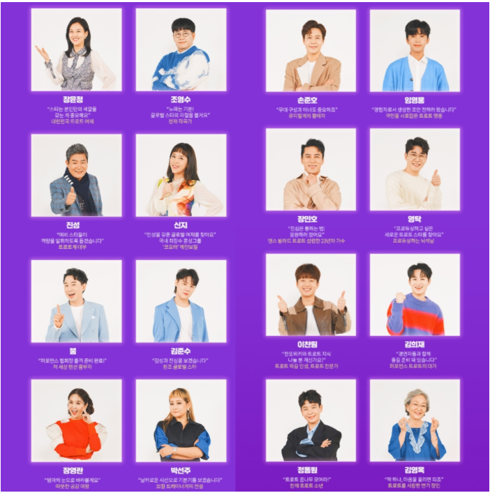 미스터트롯에 이어 MC 김성주가 마이크를 다시 잡았고, 장윤정,조영수,진성, 신지, 김준수 특급 마스터와 '호랑이' 마스터 박선주가 합류했습니다. 또 임영웅·영탁·이찬원·정동원·장민호·김희재 등 과거 출연진에서 '마스터'로 등극한 활약할 예정입니다. 미스트롯2의 맛 본방을 시청 못하신 분들은 TV조선 온에어를 통해 실시간TV다시보기로 시청가능합니다