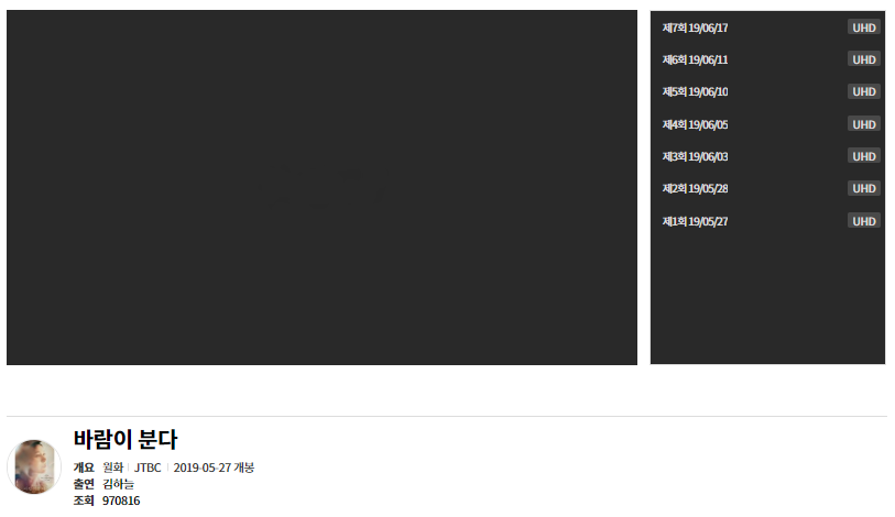 검색창에 드라마 제목 '바람이 분다'를 입력하시고 검색버튼을 누르시면 해당드라마가 검색이 됩니다. 반드시 띄어쓰기를 하셔야 검색이 됩니다. 6월 17일자 7회를 눌러서 시청해봤는데, 제법 괜찮은 화질로 시청 할 수 있었습니다. 아래를 참조하여 바람이 분다를 시청하시기 바랍니다.