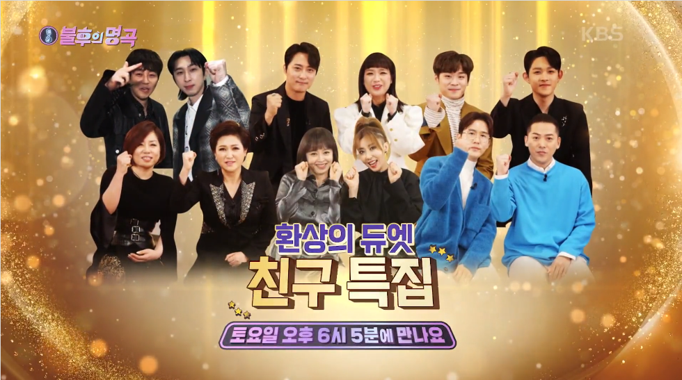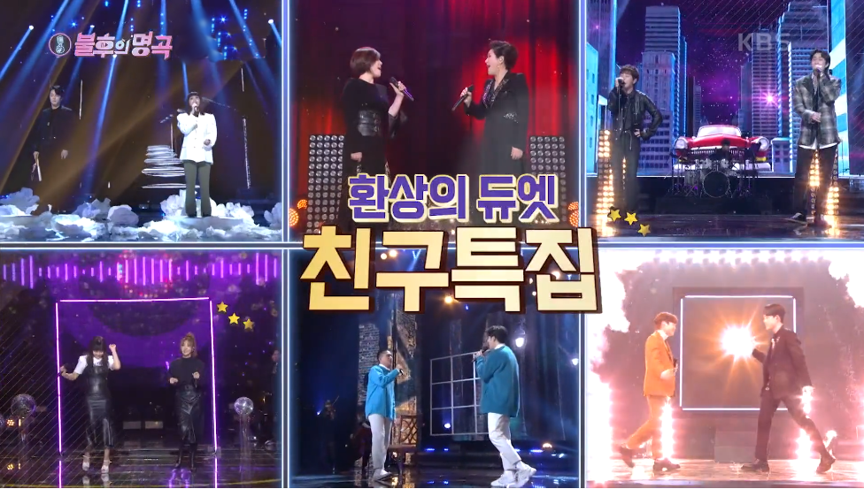 KBS 2TV <불후의 명곡> 491회에서는 연예계 절친들이 출연, 다채로운 무대를 꾸미는 절친 특집으로 꾸며집니다. 이날 출연자로는 트로트계 대표 절친 김용임&한혜진이 장윤정의 ‘사랑아’를 선곡, 시원한 보컬과 파격 댄스 퍼포먼스를 펼쳤으며 완벽한 비주얼의 김완선&강성연은 김범룡의 ‘바람 바람 바람’으로 매혹적인 무대를 선보였습다.