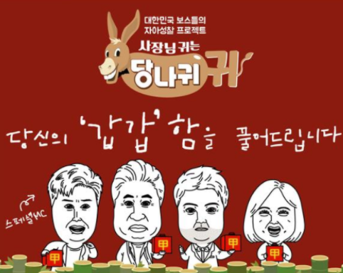 KBS2 사장님 귀는 당나귀 기는 일할 맛 나는 일터를 만들기 위한 대한민국 보스들의 자발적 자아성찰 예능 프로그램입니다.