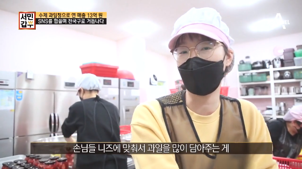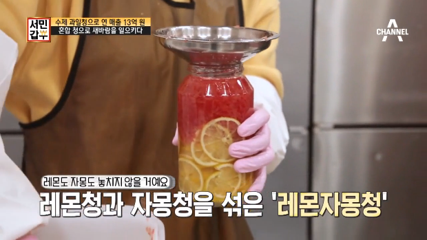 이후 시어머니의 도움을 받아 윤은 씨는 창업 3개월 만에 큰 성과를 이뤄낸다. 단시간에 큰 소득을 올리기까지 윤은 씨에게는 남다른 비법이 있어 가능했다는데, 대부분 과일과 설탕을 5 대 5 비율로 섞는 데 반해 그녀가 만드는 수제 청은 설탕 비율을 40% 이하로 줄였습니다.