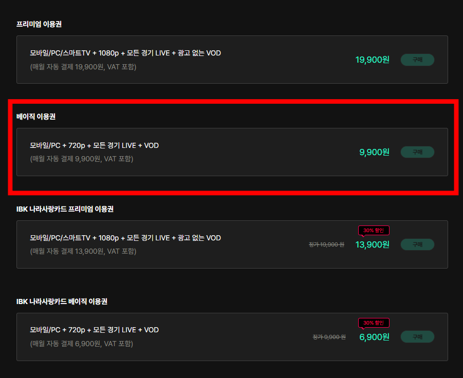 - 스포티비 나우 상품 선택