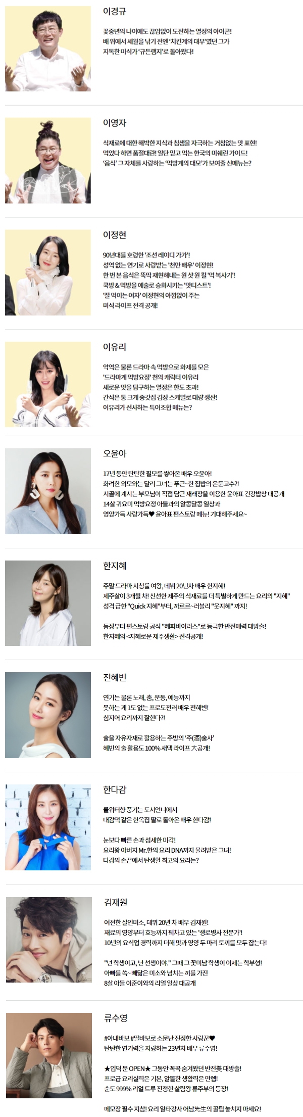 출연진 - 이경규, 이영자, 이유리, 오윤아, 한지혜, 전혜빈, 김재원, 류수영 이연복