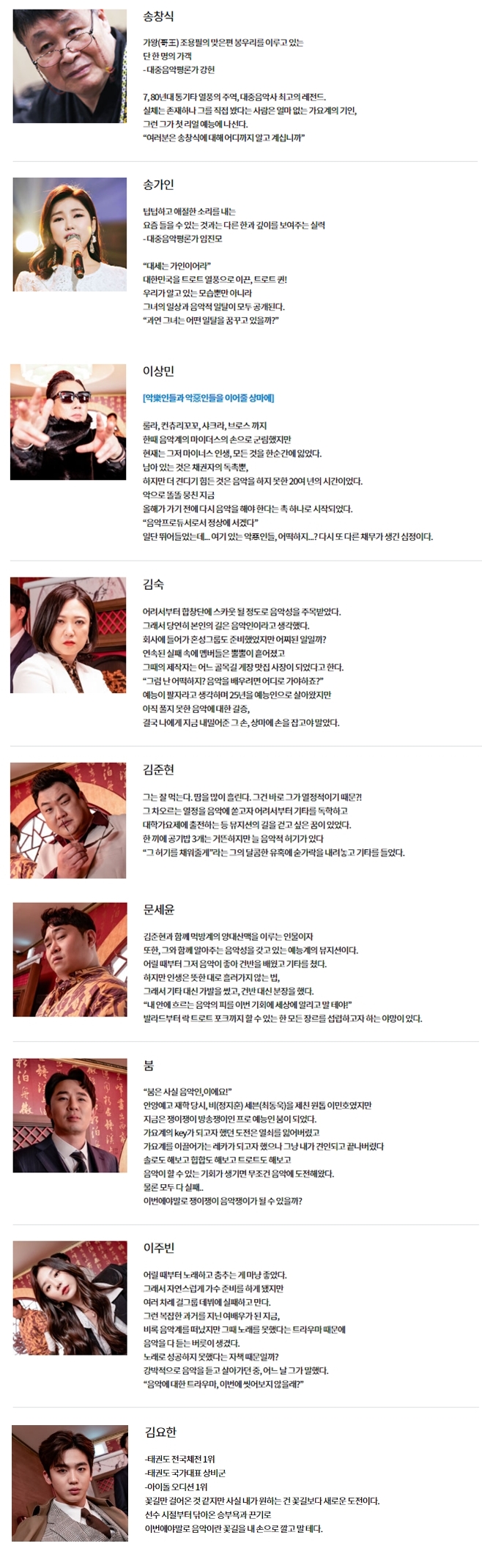 출연진 - 송창식, 송가인, 이상민, 김숙, 김준현, 문세윤, 붐, 이주빈, 김요한
