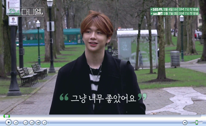 SBS미디어넷의 신규 채널 SBS FiL(에스비에스 필) '안녕, 다니엘' 촬영에서 강다니엘은 미국 포틀랜드로 떠나 여유로운 일상을 보내며 혼자만의 여행을 즐겼습니다