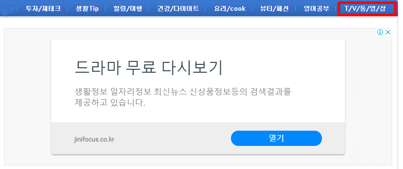 해당 사이트 메인에서 TV/동영상 메뉴를 눌러 들어갑니다.