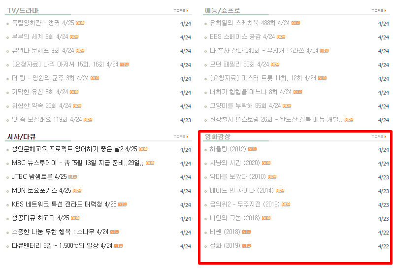 최신작 영화보다는 지난 영화들이 많이 업데이트 됩니다.