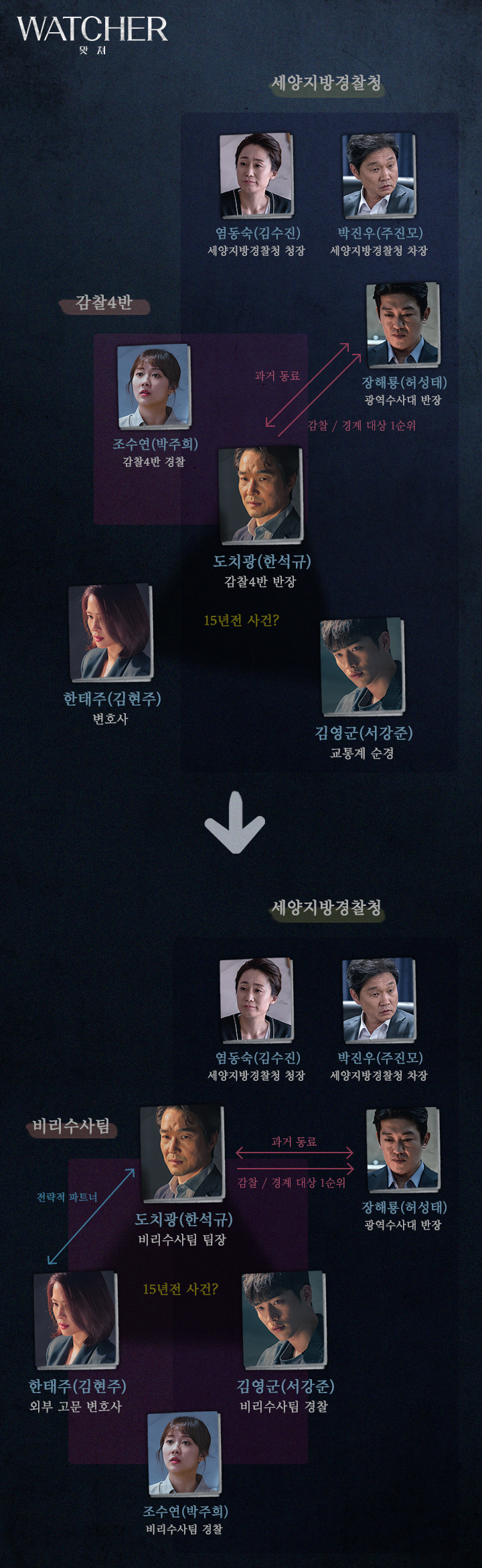 수사팀 엘리트였다가 비극적인 사건을 겪으며 경찰 내부의 비리를 파헤치는 도치광(한석규 분)와 내면에 따뜻한 성격을 갖춘 열혈파 순경이지만 아버지가 비리 경찰로 낙인 찍힌 김영군(서강준 분), 김영군의 아버지 사건을 맡은 범죄자 전문 인기 변호사 한태주(김현주 분)이 주연으로 등장해 다양한 갈등을 예고합니다.