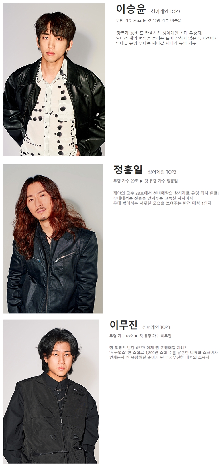 유명가수전 재방송 1회 싱어게인 TOP3 이승윤 정홍일 이무진 유명가수 심사위원편 규현 이해리 선미 송민호 라이브 다시보기 예고 방송