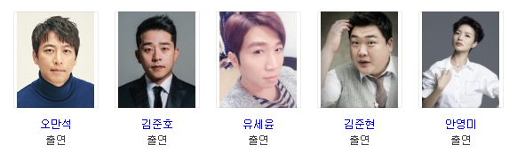 출연진 - 강호동, 이수근, 하하, 정혁, 하성운, JR