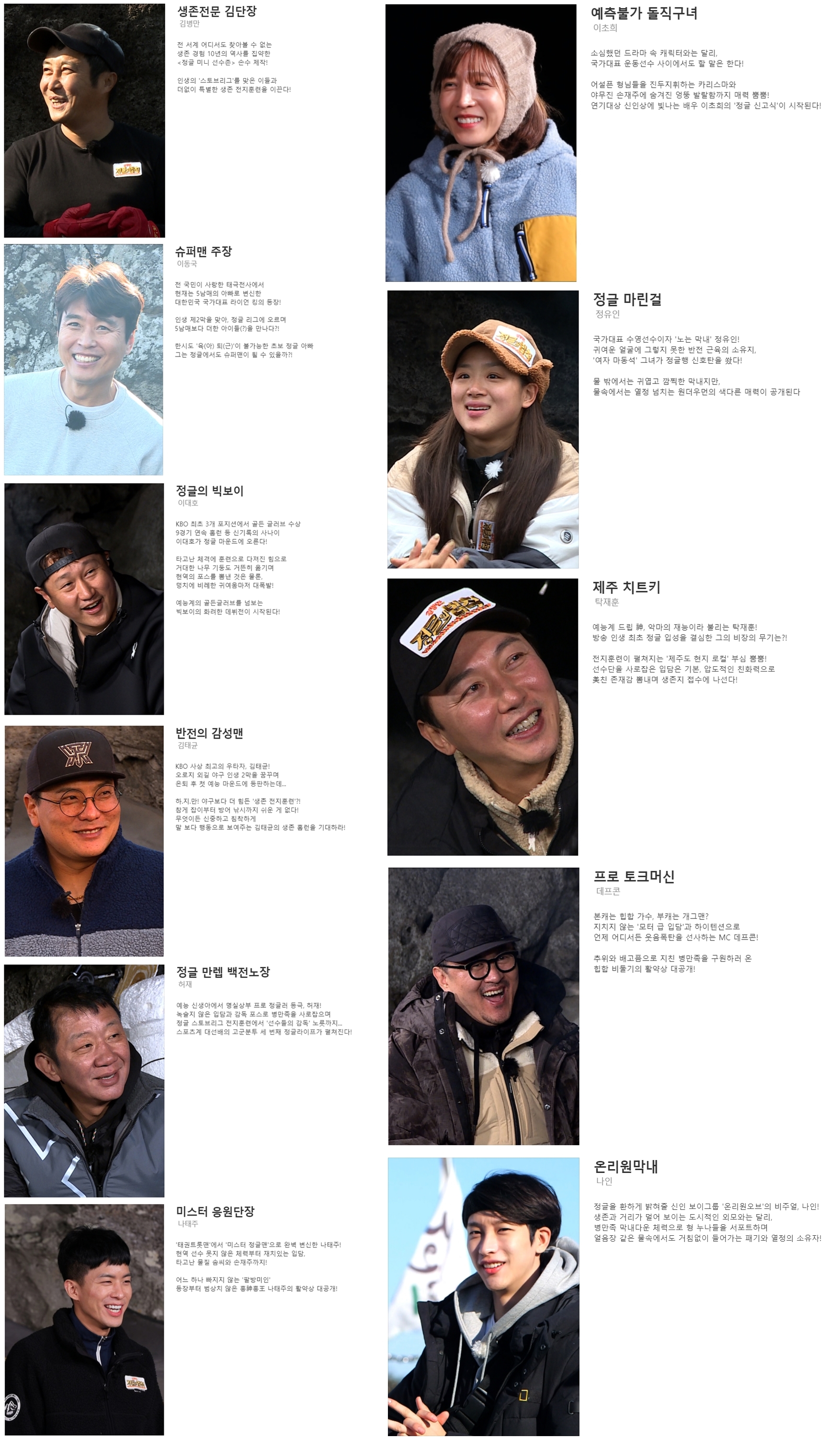 출연진 - 김병만, 허재, 이동국, 탁재훈, 데프콘, 이대호, 김태균, 나태주, 이초희, 정유진, 나인