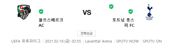 토트넘은 한국시간으로 25일 오전 2시 30분에 영국 런던 토트넘 홋스퍼 스타디움에서 볼프스베르거를 상대로 2020-21시즌 유럽축구연맹(UEFA) 유로파리그 32강 2차전을 치룹니다.