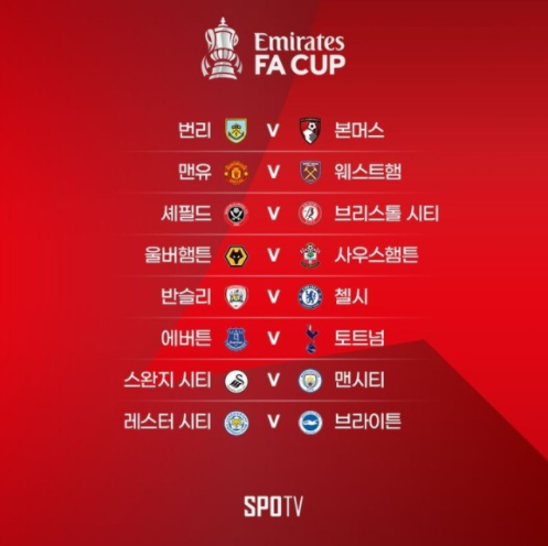 지난 새벽 본머스와 크롤리와의 32강 마지막 경기까지 끝나면서 잉글랜드 FA컵 16강 대진표가 완성되었는데요. EPL 빅6 중에선 리버풀, 아스날이 탈락하면서 맨시티/맨유/토트넘/첼시 4팀이 올라간 가운데, 2부 리그 팀들의 업셋은 몇경기나 나올지, 우승 후보였던 리버풀을 꺾은 맨유의 기세가 계속 이어질지, 토트넘과 에버턴의 6-7위 매치 등이 주목할만한 점이네요. 손흥민 선수의 좋은 모습도 기대됩니다.