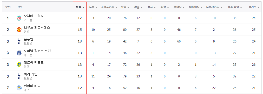 한편 리그골이 잘 터져주지 않아서 3위까지 득점순위에 밀려 있습니다. 이번에 멀티골을 기록해 단독 2위까지 올라갔으면 하는 바람입니다.