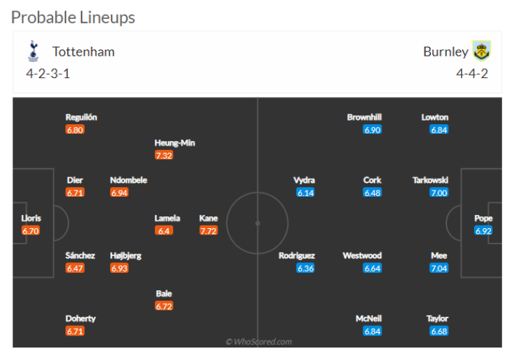후스코어드닷컴은 토트넘은 4-2-3-1 포메이션이 예상하고 있으며, 토트넘의 예상 선발 라인업에는 위고 요리스 골키퍼를 비롯해 도허티-산체스-다이어-레길론, 호이비에르-은돔벨레, 베일-라멜라-손흥민, 케인이을 예상하고 있습니다.