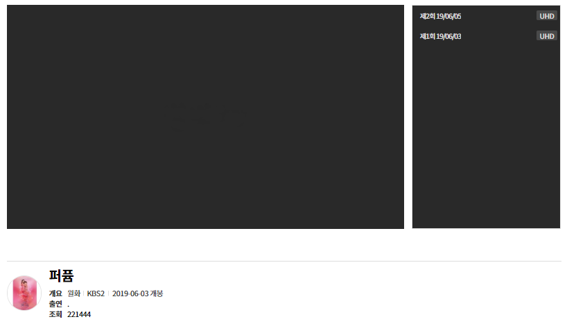 검색창에 해당 드라마 제목을 입력하시고 검색버튼을 누르시면 검색이 됩니다. 1회 방송을 눌러서 시청해봤는데, 괜찮은 화질로 볼 수 있었습니다. 아래를 참조하여 퍼퓸을 시청하시기 바랍니다.