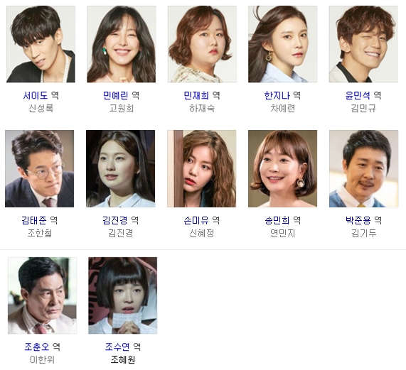 주인공 서이도 역에 신성록, 민예린 역에 고원희, 한지나 역에 차예련 이밖에도 민재희 역에 하재숙, 윤민석 역에 김민규, 김태준 역에 조한철, 김진경 역에 김진경, 손미유 역에 신혜정, 송민희 역에 연민지, 박준용 역에 김기두 등이 출연합니다.