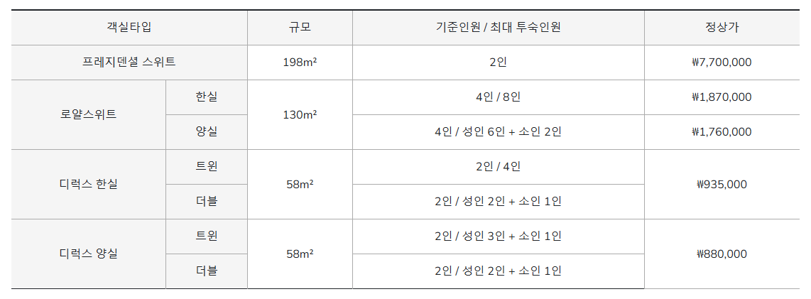 - 공식 홈페이지 또는 고급 호텔 예약 사이트를 통해 예약 가능